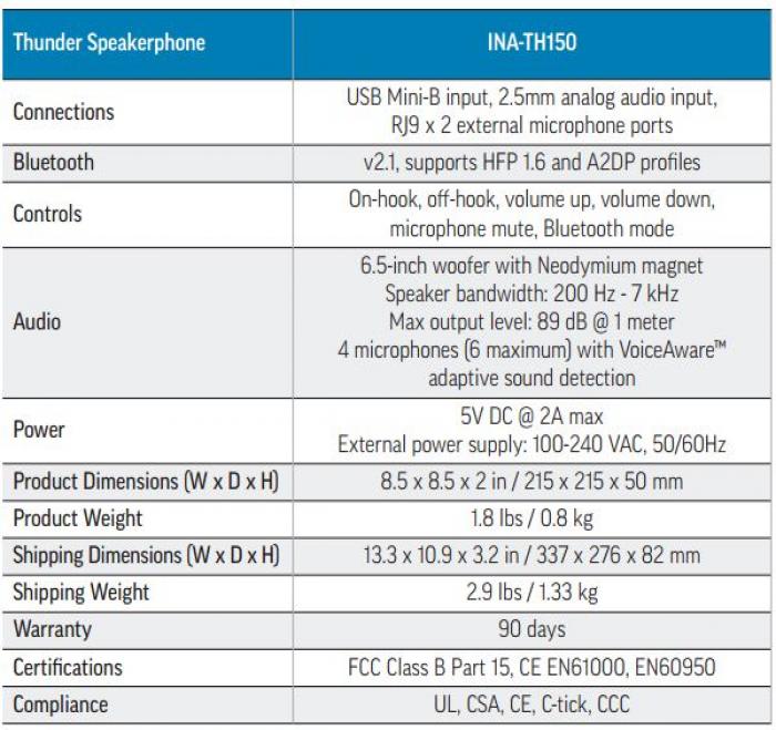 Az InFocus Thunder Speakerphone biztosítja a tiszta hangzást és a kommunikáció hatékonyságát nagy méretű tárgyalókban is, kiváló kiegészítő bármilyen (video)konferencia rendszerhez.