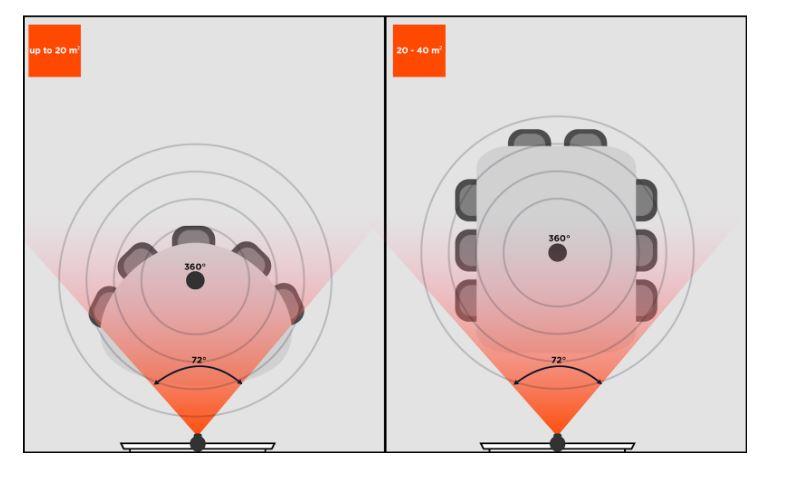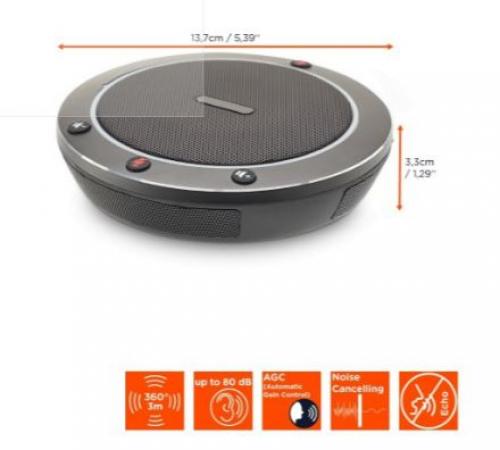 A kicsi és kompakt kialakítás helyet takarít meg a tárgyalóasztalon, de így is akár 80 dB-es lejátszási hangerőt hoz létre .